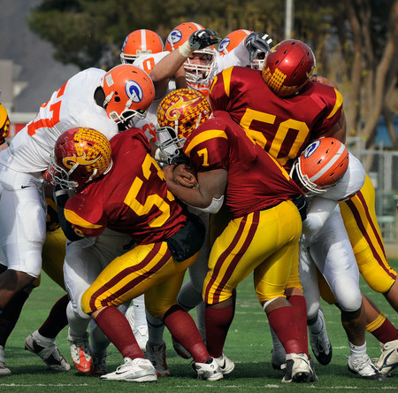 Del Sol (12-2) got a big play late in the first quarter when Evan Weinstock beat a Gorman defender and made a shoestring catch of a Troy Miller pass near the 20. Weinstock stumbled as he caught the ball but regained his balance for the touchdown to make it 14-7.