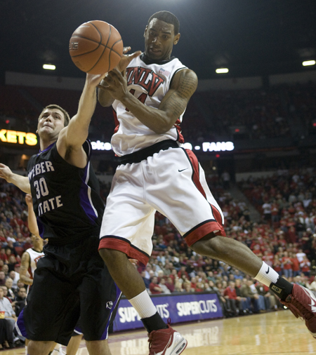 Matt Shaw made four 3-pointers and scored a career-high 16 points, and Chace Stanback scored 15 points as UNLV defeated Weber State 72-63 at the Thomas & Mack Center.
