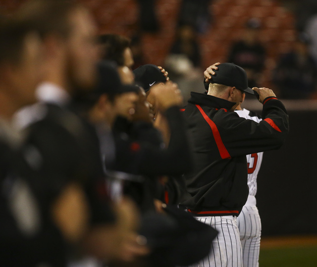 UNLV players prepare to play Omaha in their opening season baseball game at Earl E. Wilson Stadium at UNLV in Las Vegas on Friday, Feb. 17, 2017. (Chase Stevens/Las Vegas Review-Journal) @csstevensphoto