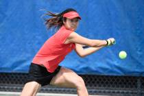 UNLV senior Aiwen Zhu downed Iowa’s Samantha Mannix 6-2, 6-2 to win the Flight One singles title in the Rebel Invitational on Sunday at Fertitta Tennis Complex.