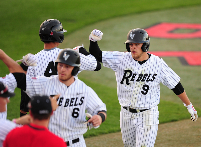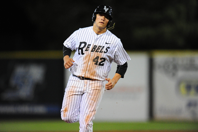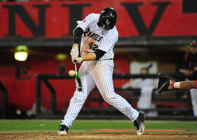Ames, a 6-foot-3-inch, 245-pound left-handed hitter from Tucson, Arizona, doubled twice and drove in four runs. He drilled a three-run double down the right-field line in the first to put UNLV ahead 3-1. He singled in the third and fifth, when the the Rebels went ahead 5-4. Ames launched an RBI double to deep center in the seventh to help UNLV close the gap to 8-6 and scored to make it 8-7 on Nick Rodriguez’s RBI single.