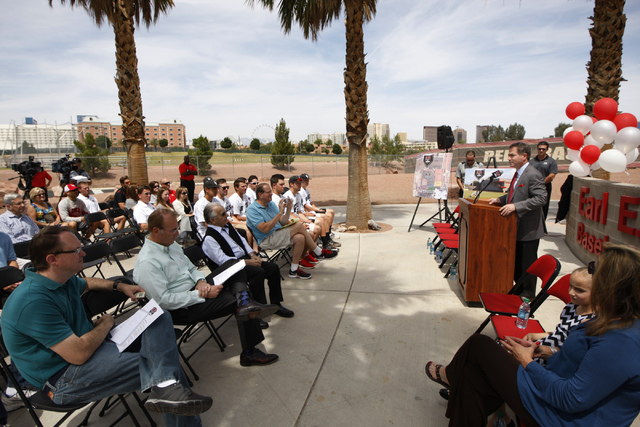 M Resort president Anthony Marnell III is the chief benefactor of the building, which includes a weightroom, two batting cages, locker room, coaches’ offices, players’ lounge, patio overlooking the field and other amenities. It will be called the Anthony and Lyndy Marnell III Baseball Clubhouse.