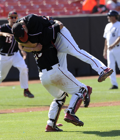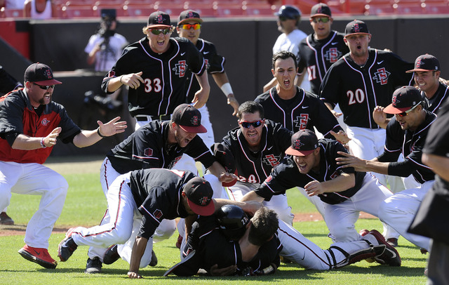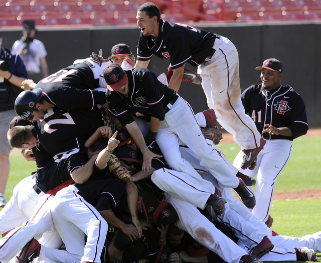 UNLV came that close to at least forcing extra innings, but the Rebels had to watch as San Diego State celebrated on their own field, the 4-3 victory giving the Aztecs the Mountain West baseball tournament championship and automatic bid to an NCAA regional.
