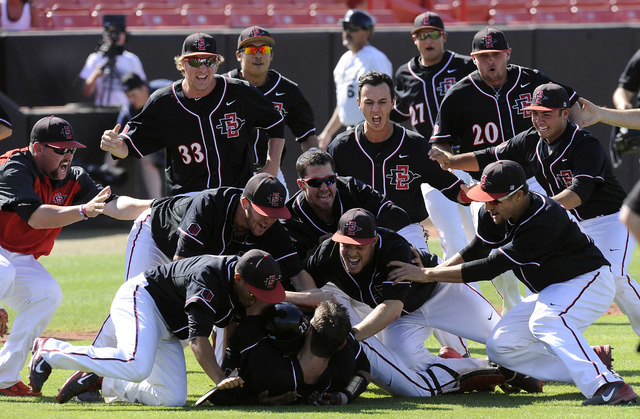 San Diego State threatened to take control throughout Sunday’s game, but left 13 runners on base. Clutch pitching by Joey Lauria, Cody Roper and Brayden Torres repeatedly kept the Rebels within striking distance.