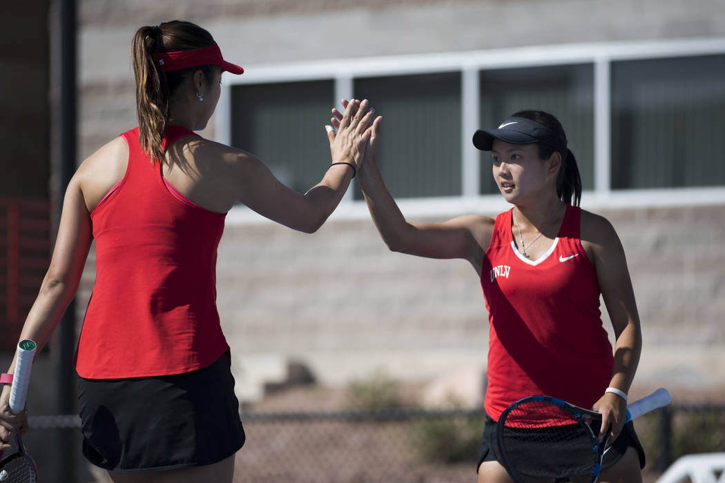 UNLV senior Aiwen Zhu and junior En-Pei Huang won the doubles title in the 17th annual Freeman Memorial women’s tennis tournament Sunday at Fertitta Tennis Complex.