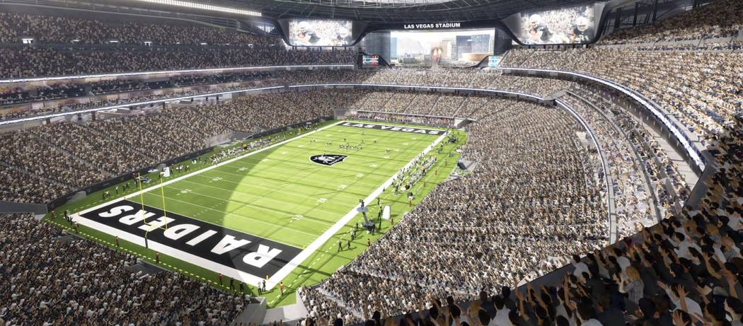 In 2020, when UNLV starts playing football games at the new Las Vegas Stadium being built for the Oakland Raiders, it’ll be silver and black. There’s a 63-page document of do’s and don’ts. Article 16.1 says the Rebels will be allowed to brand midfield and the end zones.