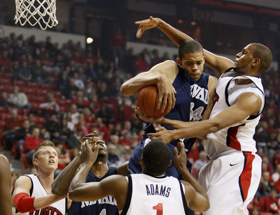 JaVale McGee, the Wolf Pack's 7-foot sophomore, dominated in the middle with 20 points and 13 rebounds.