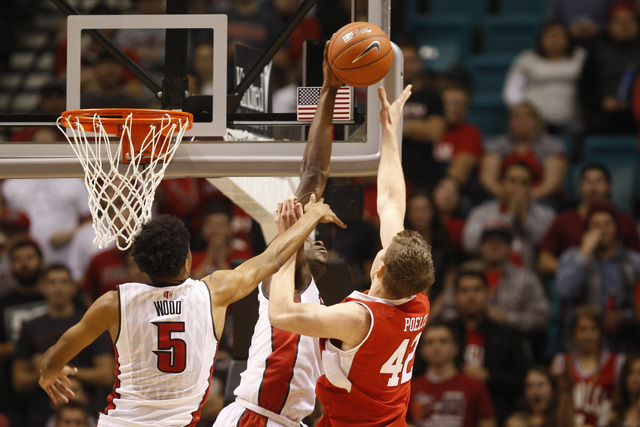 Chris Wood once again put up big numbers in the loss. The much-maligned sophomore had eight points, 13 rebounds, two blocks and two steals on Saturday night. Still, UNLV fans want more. Wood was getting crushed throughout the game on Twitter. While critics continue to call his impressive numbers phony because of all the glaring shortcomings in his game, there comes a point where it must be conceded that he’s a very good player. With that out of the way, it does seem fair to want more out of Wood. Every strong move to the basket is seemingly followed by a questionable shot, a lazy pass or a blown assignment. His frontcourt mate played some of his best basketball of the year in the first half only to be marginalized after the break. Goodluck Okonoboh looked right at home at the MGM Grand early in the game. He was scoring, blocking shots and causing all sorts of trouble for Utah’s bigs. The Utes figured it out, though. After the freshmen had six points, five blocks and three rebounds in the first half, he posted one point, one block and no rebounds in 13 minutes after halftime. It was either a great adjustment by Utah or Okonoboh simply disappeared. The frontcourt did do an excellent job getting on the glass against one of the better rebounding teams in the nation, actually winning that category on the stat sheet.