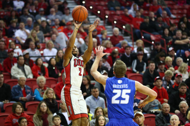 Simon has pushed the right buttons in his first week in charge. UNLV’s offensive efficiency has improved dramatically along with all aspects of its shooting. The Rebels made 13 of 25 3-pointers and 19 of 20 free throws against the Falcons.