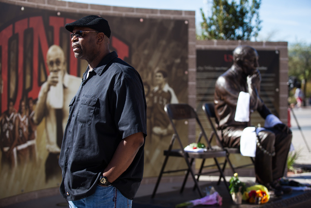 Moses Scurry was a power forward on the 1990 championship team. Before that, he was one of those inner-city kids. He called his former coach and close friend “a life changer” as he stood in front of the statue of Tarkanian outside of the Thomas &Mack Center on Wednesday.