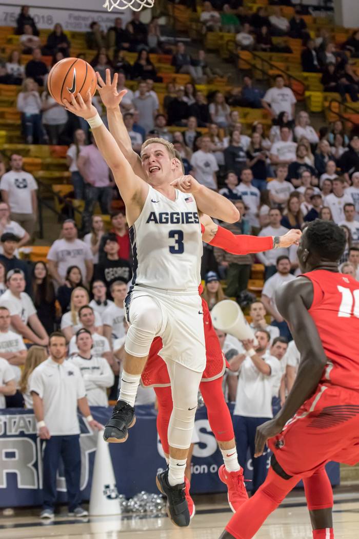 Utah State is relying on Merrill to carry a heavy load. He averages 35.3 minutes, but his production has not fallen off. He also leads the Aggies with a 16.1-point average, including 17.4 in conference play.