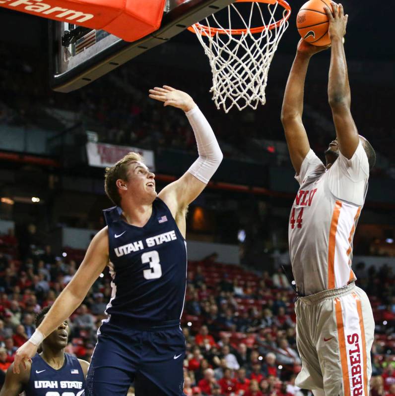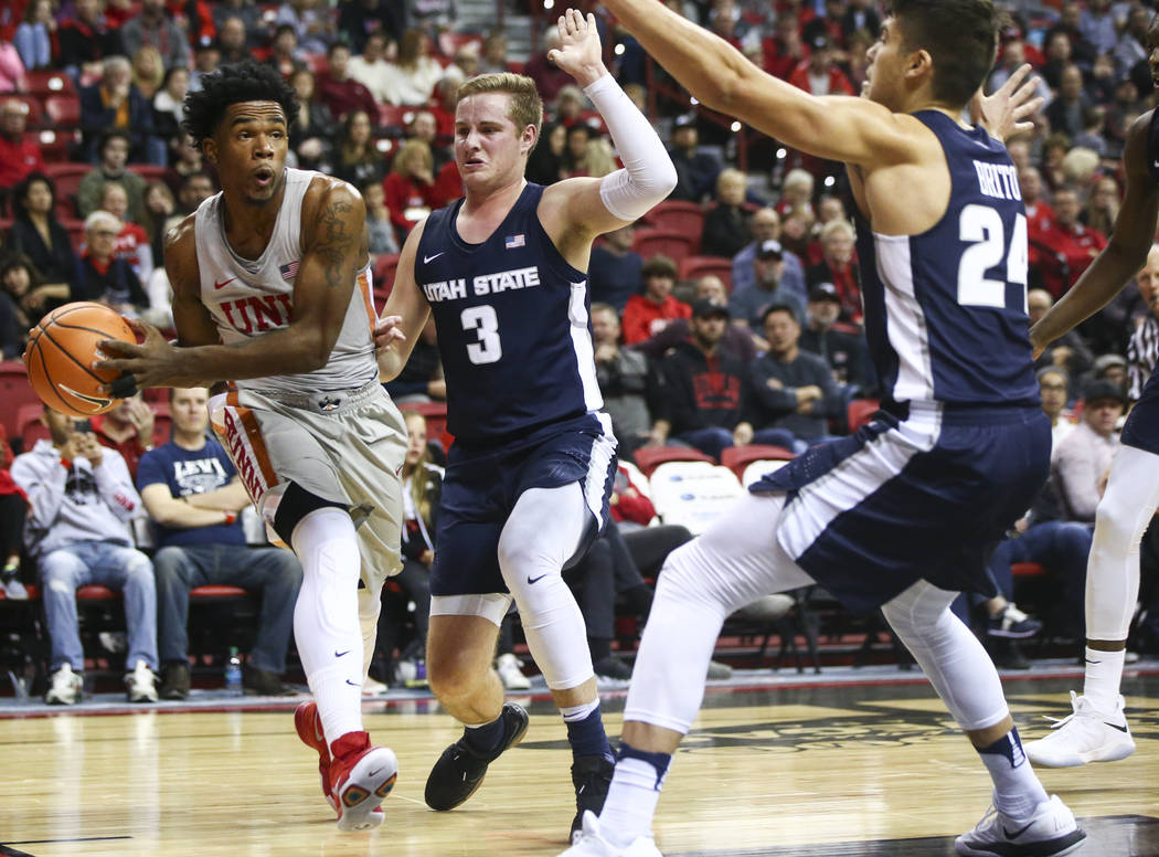 The teams meet again Saturday, and both are trending in the wrong direction with matching four-game losing streaks. UNLV (19-11, 8-9 Mountain West) visits the Aggies (14-16, 7-10) at 6 p.m. at Dee Glen Smith Spectrum in Logan, Utah.