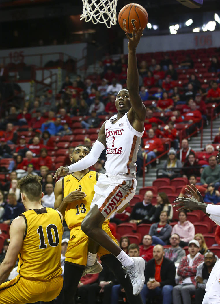 UNLV coach Marvin Menzies saw Ntambwe’s potential in training camp, immediately inserting the 6-foot-9-inch forward into the starting lineup.