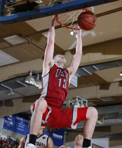 Jones and McCaw fueled a 21-4 run. After a 3-pointer by Jones and a steal and dunk by McCaw, Jones’ layup put UNLV up 54-43 with 12:43 remaining.