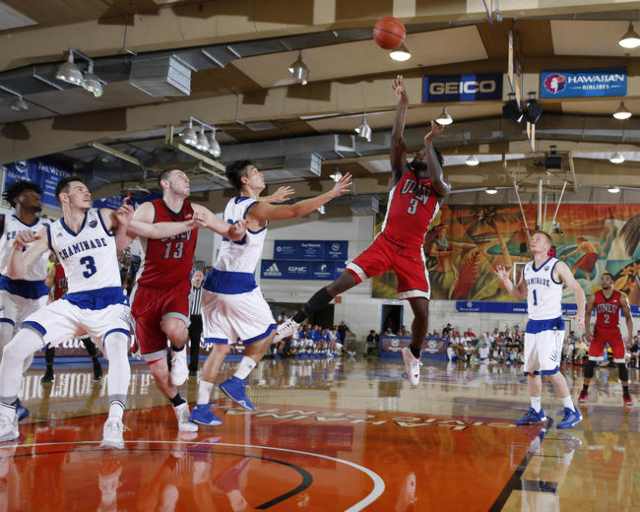 The Silverswords were sticking it to the Rebels early. Oscar Pedroso knocked down an open 3 to give Chaminade a 15-7 lead 7½ minutes into the game. UNLV finally grabbed its first lead, 29-28, on Ike Nwamu’s layup with 3:23 to play.