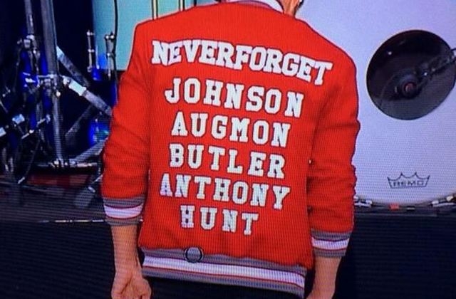It was just in time to see lead singer Brandon Flowers sporting a jacket in honor of UNLV’s 1989-1990 national championship team.