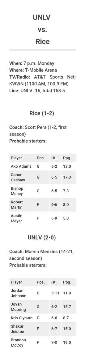The Rebels will venture outside the Thomas & Mack Center for the first time when they play Rice (1-2) in the MGM Resorts Main Event on Monday — albeit just down the street at T-Mobile Arena.
