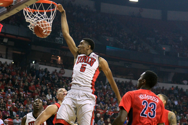 Freshman guards Rashad Vaughn (21 points) and Patrick McCaw (13 points, seven rebounds) also were important to the team’s success. Vaughn outplayed the Wildcats’ star freshman, Stanley Johnson. McCaw came off the bench to play 31 minutes and handle point guard duties while senior starter Cody Doolin was in foul trouble and ineffective.