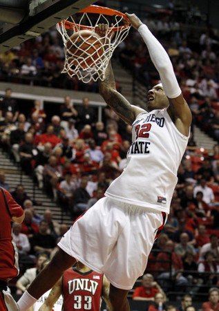 SAN DIEGO — Each time Billy White dunked, he was putting exclamation points on a victory over an opponent he relishes beating. White dunked three times and scored 19 points as San Diego State dominated UNLV 68-58 before a crowd of 9,224 at Viejas Arena.