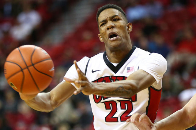 Patrick McCaw is turning into a star for the UNLV men's basketball team. Last season, McCaw provided energy off the bench and played behind Rashad Vaughn, who's now a rookie for the Milwaukee Bucks. Three games into the 2015-16 season, it's clear that McCaw is the Runnin' Rebels' go-to scorer. The sophomore combo guard had a career night in a 84-64 win against Southern Utah at the Thomas & Mack Center on Wednesday. McCaw dropped a game-high 24 points, a personal-best. UNLV only made five 3-pointers, but three came from McCaw. He went 8 of 12 from the field and a perfect a 5 of 5 at the free throw line. McCaw set the tone defensively by putting pressure on the Thunderbird guards at center court, which led to steals and fastbreak layups. Point guard Jerome Seagears had another solid outing with 11 points and six assists. Ike Nwamu didn't do much on the stat sheet, recording only one point.