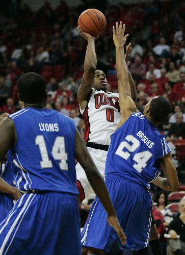 On the Rebels' next possession, Willis backed into the lane and dropped in a jumper from close range. After Brooks missed a jumper, UNLV's Oscar Bellfield made a 17-footer to stretch the lead to 41-36.