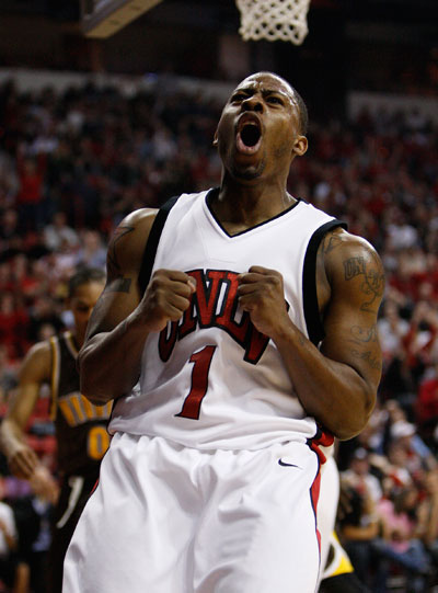 Adams was the igniter. He scored six straight points to put UNLV ahead 31-26 with five minutes remaining.