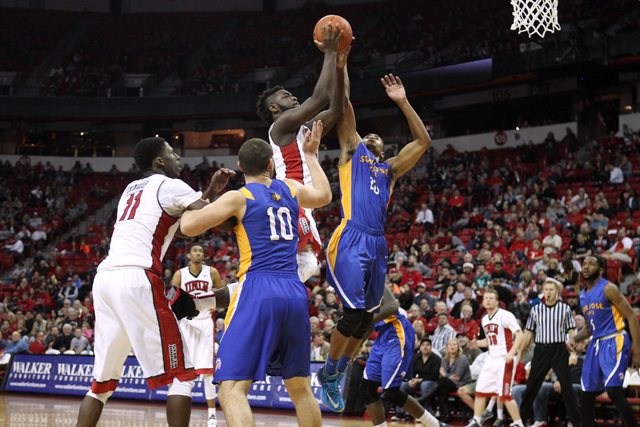 Vaughn’s 15 points and 10 rebounds helped lift UNLV to a 74-40 victory over San Jose State before a mostly subdued crowd of 12,623 on Saturday at the Thomas & Mack Center.