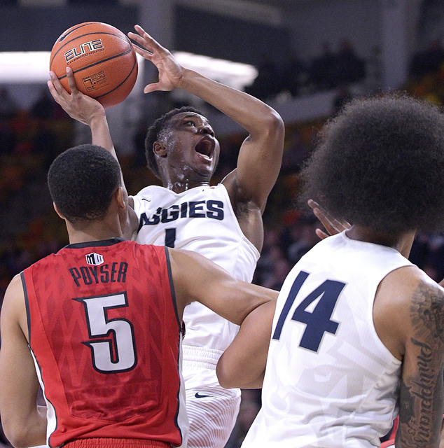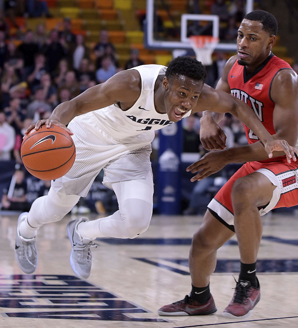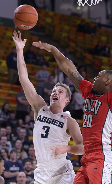Utah State led 37-31 at halftime after a series of runs by both teams over the opening 20 minutes. UNLV went zone early and actually rallied from eight down to lead 24-21, but the Aggies hit three 3s over the final 2:48 to regain control.