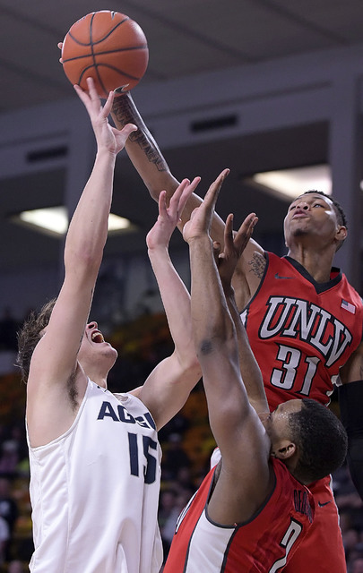 One of the Mountain West’s best shooting sides sent UNLV home a loser from distance, making 13 3-pointers en route to a 79-63 victory at the Dee Glen Smith Spectrum.
