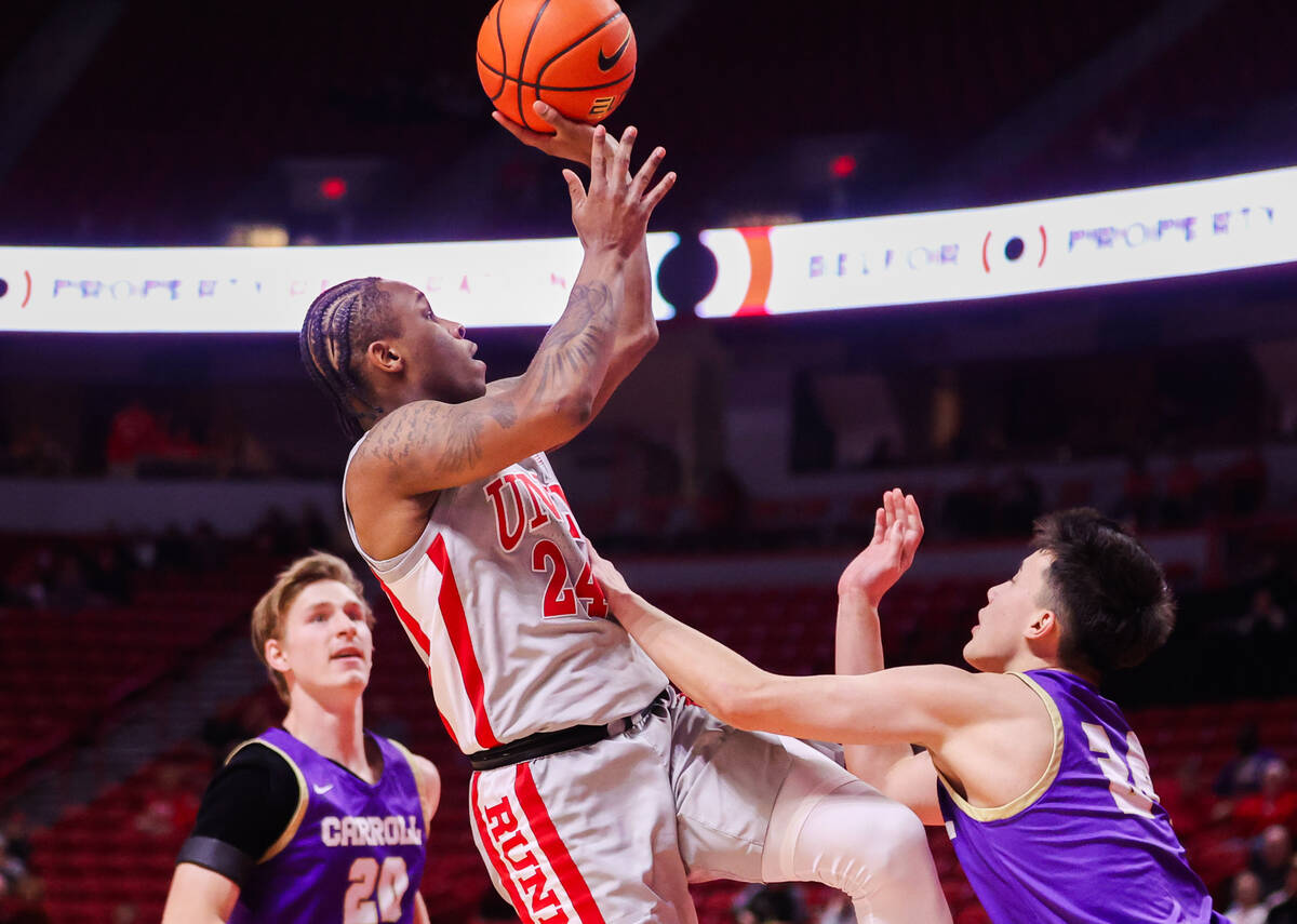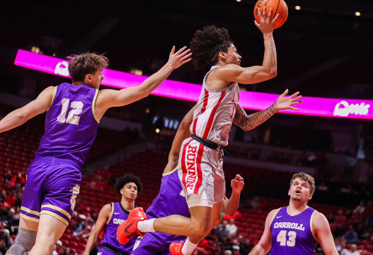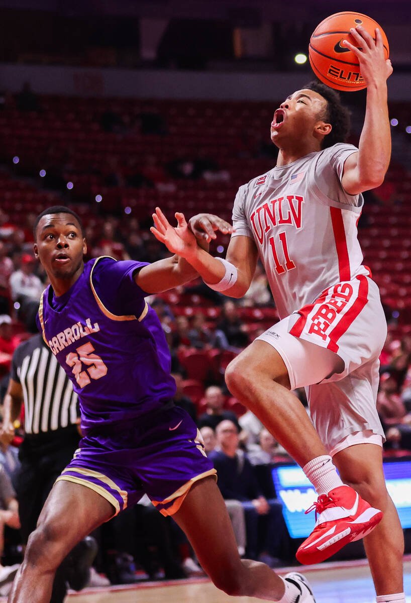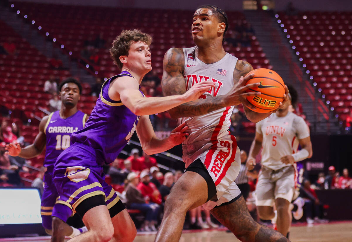 UNLV showed signs of rust from a nine-day break early in the first half, as a scoring drought of more than three minutes had Carroll tied with UNLV 9-9.
