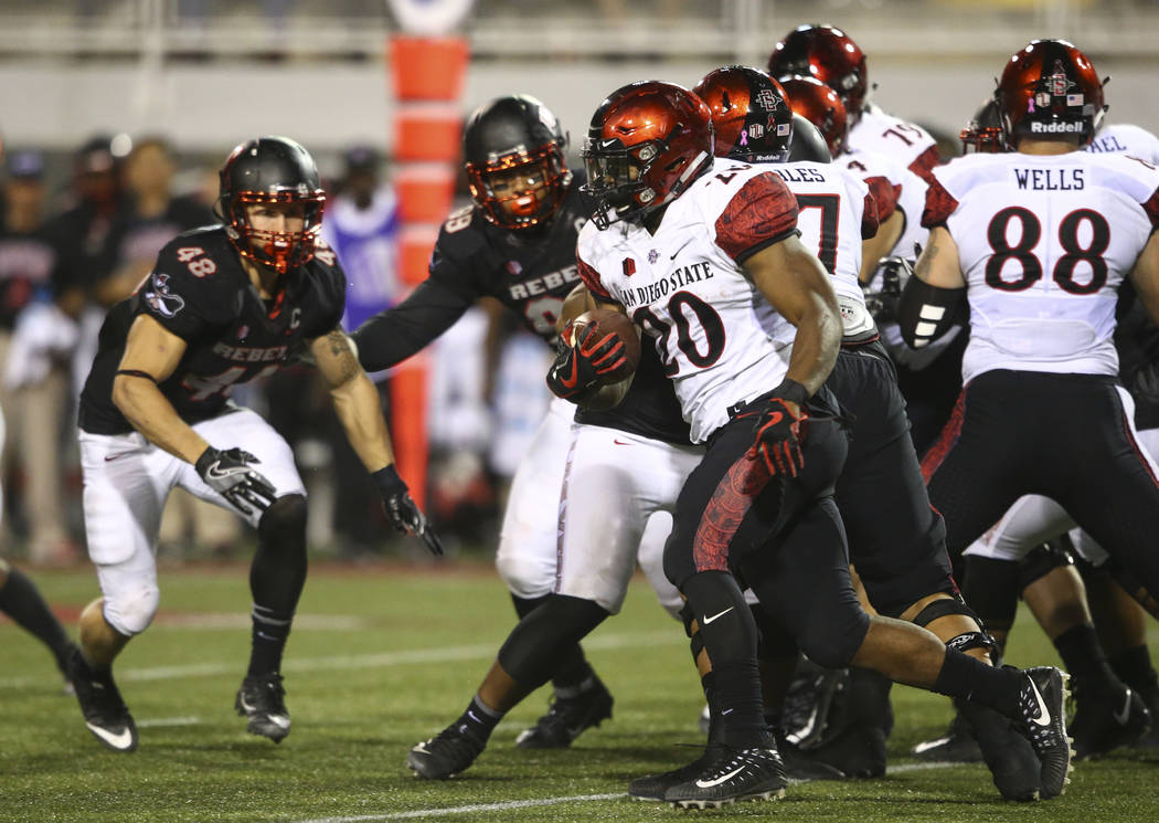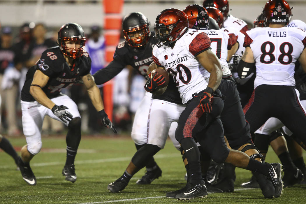 Two years ago, the Aztecs won 52-14. This time, the final score indicated a rout, but San Diego State slowly pulled away as an emotional week caught up to the Rebels.