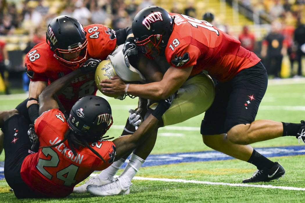 “The whole emphasis throughout the week for the defense was getting off the field, getting three-and-outs, tackling better than we did last week,” said UNLV safety Chauncey Scissum, who intercepted a pass. “Last week, we didn’t show that we were a great tackling team.”
