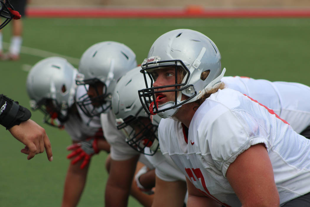 When junior Sid Acosta suffered a knee injury in the spring, it created a strong competition at center. Junior Zack Singer (6-2, 320) of Bishop Gorman operated with the first team the first two days of training camp, and senior J’Ondray Sanders (6-5, 290) of Basic practiced with the starters Friday and is expected to do so again Saturday.