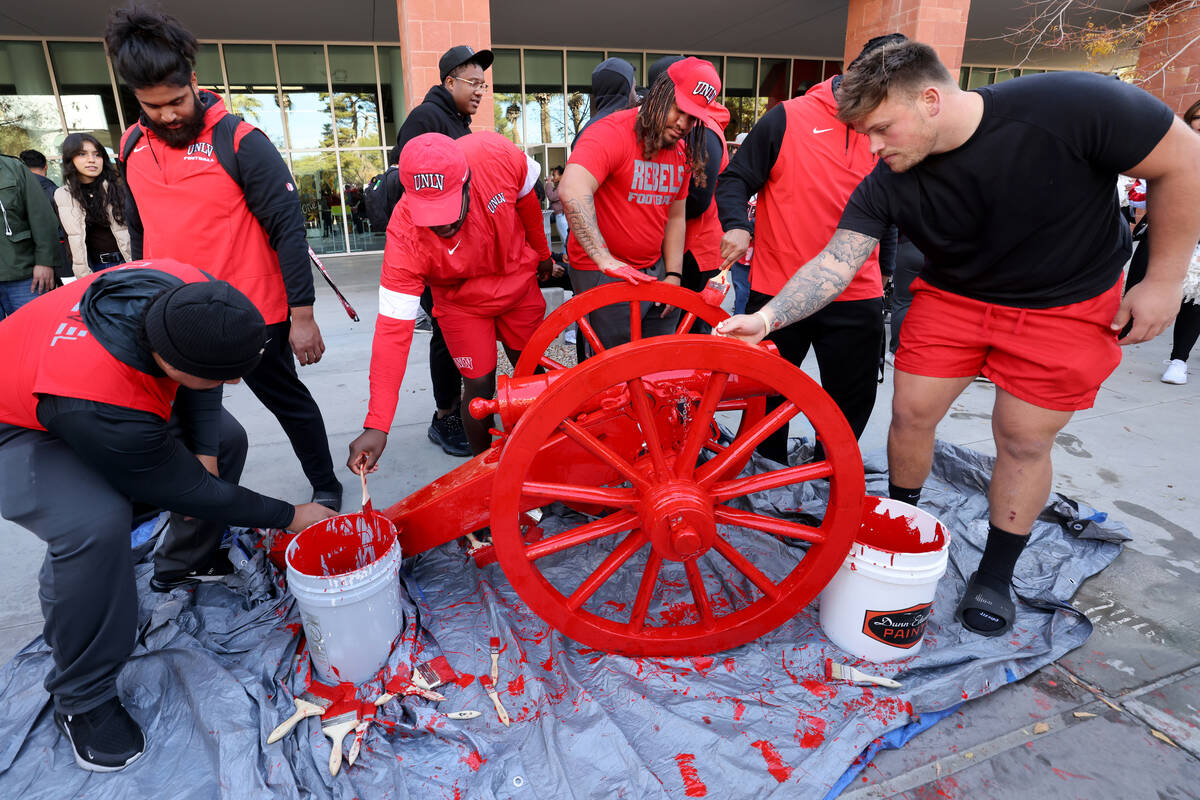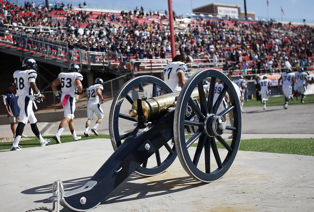 “The cannon is great. It’s too heavy to steal,” said Robinson, who guided UNLV to five consecutive victories over UNR during the early 2000s. “Unless you bring a truck or something.”