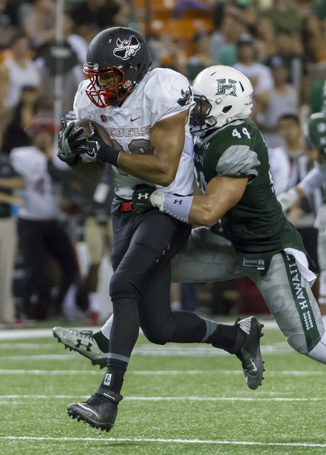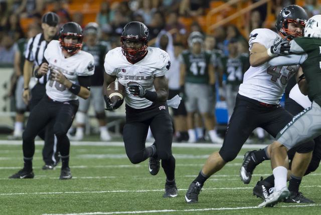 Forget about UNLV’s football team finally winning a game in which it trailed in the fourth quarter. The Rebels’ 41-38 comeback victory over Hawaii early Sunday was their first win in a game they trailed at any point under second-year coach Tony Sanchez.