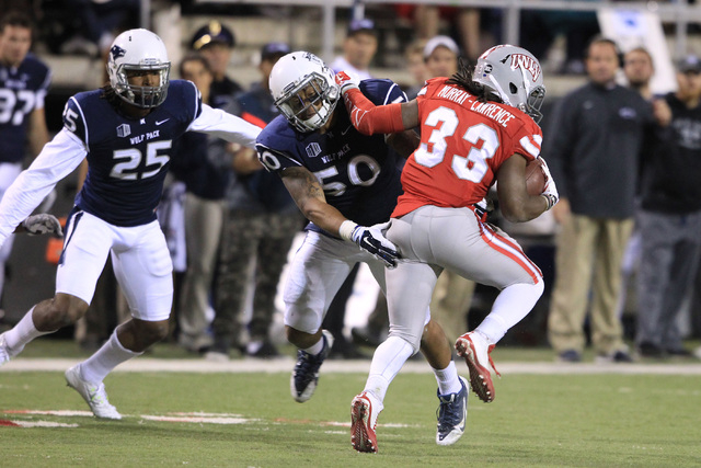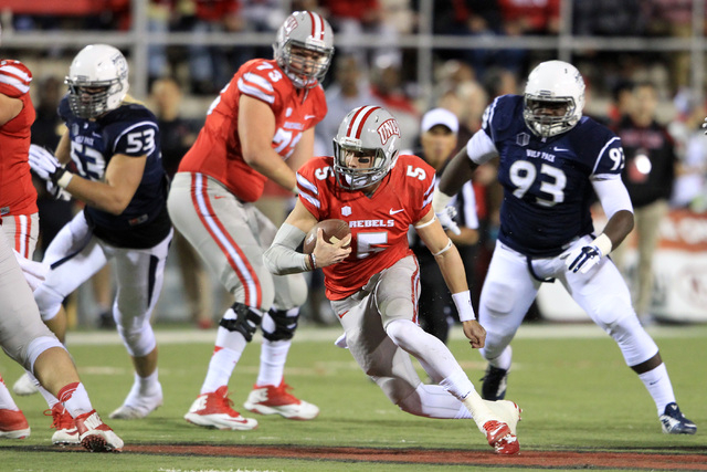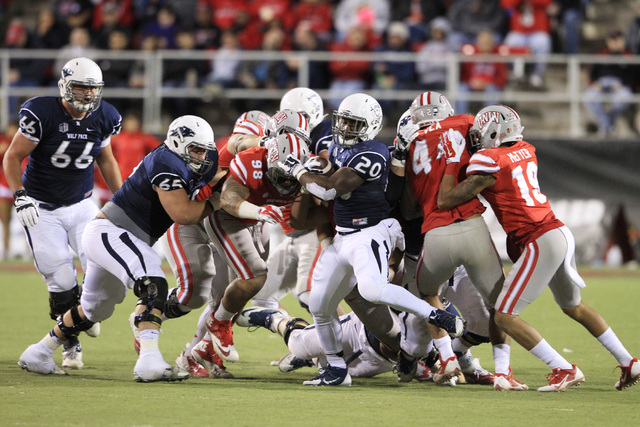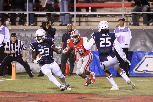 UNLV put together some very solid drives and the final stats showed the Rebels racked up a respectable 376 yards of offense in Saturday night’s 49-27 loss to UNR at Sam Boyd Stadium. A closer look shows that the unit suffered from some of the same problems that have plagued it all season long. The Rebels turned the ball over four times, including two interceptions in the end zone to kill promising drives. Those are the kinds of miscues that appeared far too often this season and will have the new coach at UNLV questioning whether Blake Decker will be the quarterback at the beginning of his senior year. Shaquille Murray-Lawrence was certainly a bright spot. The senior closed out his career with 135 yards and a touchdown on 21 carries.