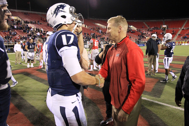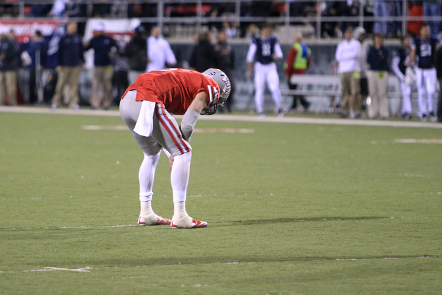 There really weren’t a whole lot of glaring errors in the special teams on Saturday night, but there really weren’t any standout positive plays either. Marcus Sullivan did have a nice kickoff return, though there were plenty of chances to make something happen with all the UNR scores. Jonathan Leiva made all of his kicks. The biggest play for the special teams unit came in the fourth quarter with the game still in question. UNLV trailed 35-20 and forced a UNR punt, but Jay Mitchell muffed the kick and the Wolf Pack recovered at the UNLV 17-yard line. Three plays later, UNR scored and essentially put the game out of reach. It was essentially the end of the Bobby Hauck era.