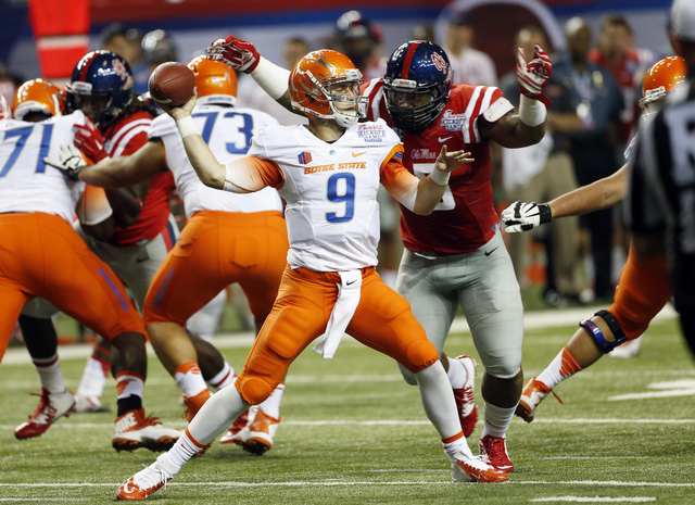 Colorado State apparently won’t miss running back Kapri Bibbs, who rushed for 1,741 yards and 31 touchdowns last season before heading to the NFL. Dee Hart and Treyous Jarrells each topped the 100-yard mark against Colorado. But even though the Rams beat Colorado in Denver, Colorado State coach Jim McElwain was far from happy when Denver mayor Michael Hancock called him by the opposing coach’s last named when handing him the trophy. “Somebody pointed that out, that nobody thinks much of us, even though how many alums do we have in the Denver area?” McElwain said at his Monday news conference. “Like the most of any university there is? And yet the mayor doesn’t even know the head ball coach’s name. I guess that really shows where we are and where I am as a program.” Hancock reportedly apologized for the gaffe. … New Mexico is expected to be without quarterback Cole Gautsche (hamstring) and wide receiver/kick returner Carlos Wiggins (thigh) against Arizona State, according to the Albuquerque (N.M). Journal. … Boise State running back Jay Ajayi played in 82 of his team’s 85 offensive snaps against Mississippi. He also supplied 179 of the Broncos’ 399 yards, and scored their only touchdown. … San Diego State plays North Carolina for the first time since losing to the Tar Heels 20-13 in the 1998 Las Vegas Bowl. Fresno State meets Utah for the first time since falling to the Utes 17-16 in the 1999 Las Vegas Bowl.