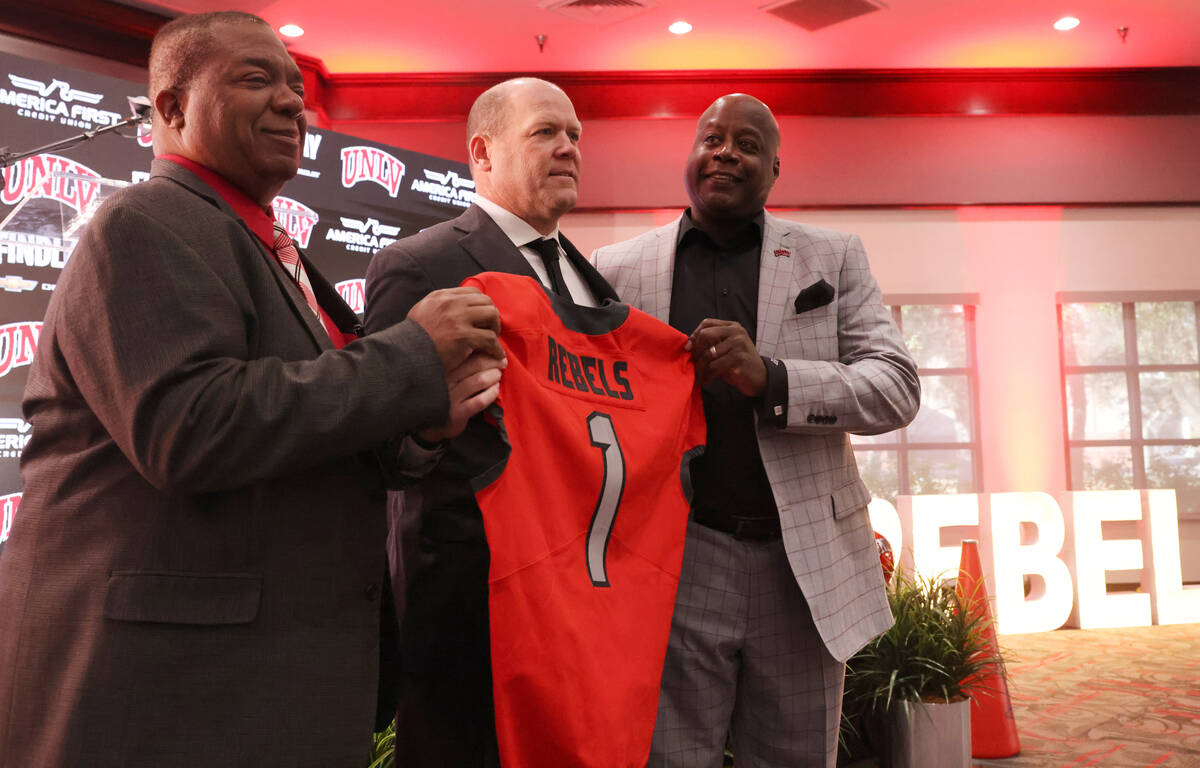 He also wants the current players to stay. Starting quarterback Doug Brumfield, who attended Wednesday’s press conference, said he’s committed to UNLV and Odom.
