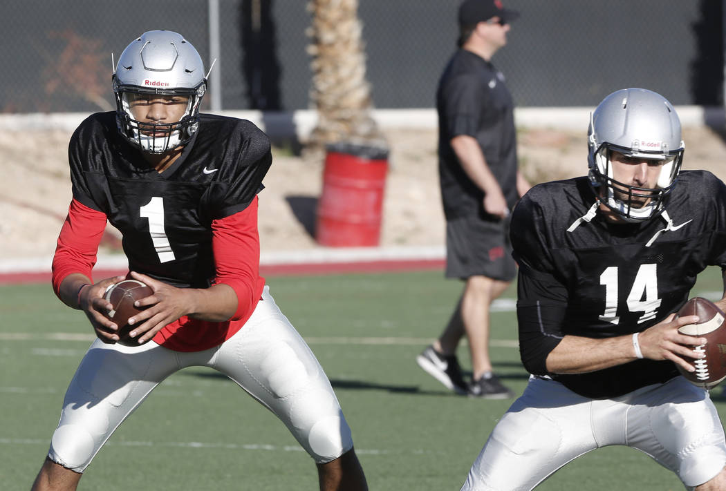 Armani Rogers, Johnny Stanton and Kurt Palandech will split snaps under center during Saturday’s Spring Showcase at Peter Johann Soccer Field on the UNLV campus. The scrimmage, which is free to the public, starts at noon.