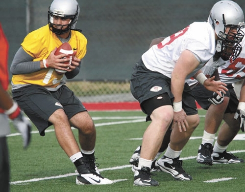 "I think we’ll run the ball fine," Hauck said. "I think we’ll throw it substantially better than we did a year ago. I kind of get some humor out of the fact we talk about our veteran offensive line with three sophomore starters."