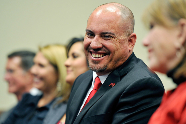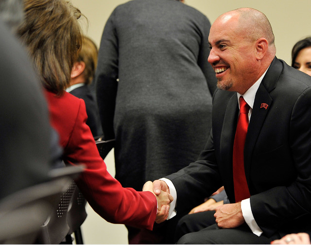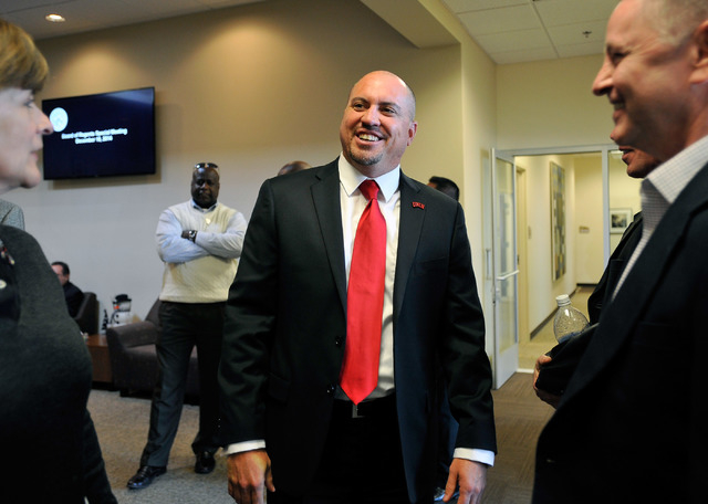 “I think (the regents) believe in the process that occurred,” said Sanchez, who went 86-5 and won six state championships in his six years at Bishop Gorman High School. “I think they believe in the vision that UNLV had and president (Don) Snyder and (athletic director) Tina Kunzer-Murphy. I think it shows they’re excited about my opportunity to lead this program into the future, and we’re going to do a diligent, good job in raising student-athletes and bringing UNLV football to some prominence.”