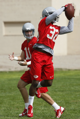 Junior Blake Decker ran UNLV’s first-team offense in practice Wednesday, and junior Nick Sherry handled the second-teamers. The two are competing to be the starter. Decker also took nearly all the first-team snaps on Tuesday. ... Linebacker Elexious Perkins II (6 feet, 210 pounds) was cleared and practiced with the team for the first time Wednesday. He is a transfer from San Bernardino (Calif.) Valley College, where he made 72 tackles last season, including four sacks, and blocked five kicks. Perkins had been waiting to be cleared by the NCAA after taking classes over the summer. ... Single-game tickets go on sale at 10 a.m. today with an online-only 48-hour sale at unlvtickets.com. Prices for the first two home games, Sept. 6 against Northern Colorado and Sept. 13 against Northern Illinois, are up to 50 percent off. Tickets also will be available at the Thomas &Mack Center box office beginning Monday or by calling 702-739-3267.