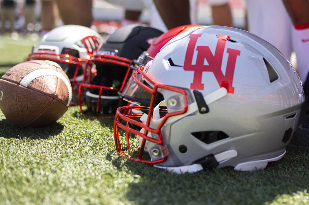 The silver helmet features an interlocking “UN” in red block lettering and was worn by the football team from 1969-72, according to UNLV. The helmets were also worn during UNLV’s first season as Sam Boyd in 1971.