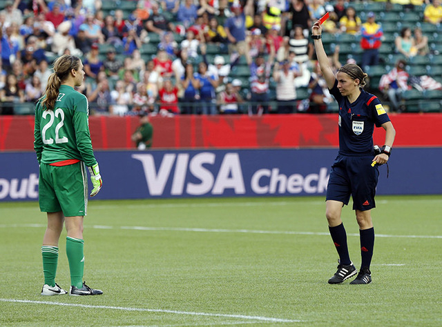 Meanwhile, it was a red card on Colombia goalie Catalina Perez in the 49th minute that shaped Monday’s match. Challenging forward Alex Morgan on her run down the left side, Perez tripped Morgan at the edge of the 18-yard box and was sent off by French referee Stephanie Frappart.