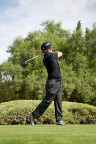 Hoffman spent Monday playing in his Foundation's Charity Pro-Am event at TPC Summerlin to raise money for several causes, including the Shriners Hospitals, Cystic Fibrosis Foundation, the Juvenile Diabetes Foundation, Goodie Two Shoes, and Blessings in a Backpack.