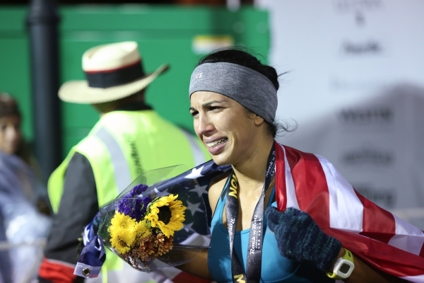 Rojas, who led from start to finish, had tears in her eyes after winning only the second marathon she’s ever entered. The 32-year-old has been running for less than three years.