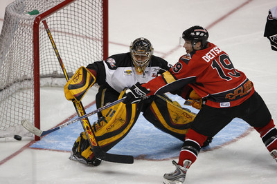 Kelly Czuy scored 6:14 into the second period to give Las Vegas a 2-0 lead for the second straight night. Czuy took a pass in stride from Marco Peluso, skated through the slot and waited for Desjardins to go down onto the ice before lifting the puck over his left shoulder.