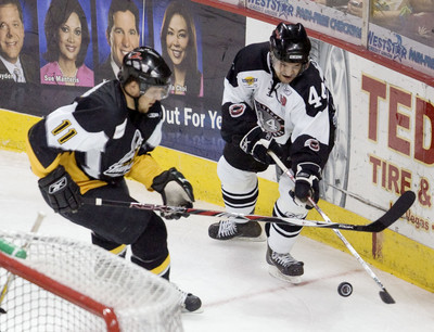 Tyler Mosienko gave the Wranglers a 1-0 lead at the 4:56 mark and Curtis Fraser, in his first game back from the American Hockey League, made it 2-0 at the 5:27 mark.