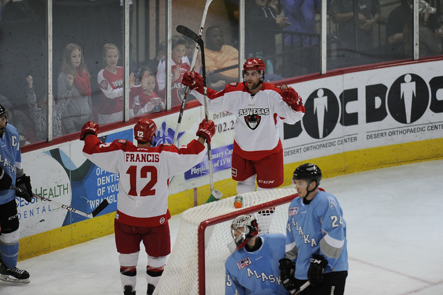 Eighth-seeded Las Vegas tied it with two goals within 2:04 in the second, when Carlo Finucci beat Olivier Roy (21 saves) at 13:59 and Chris Francis scored at 16:03.